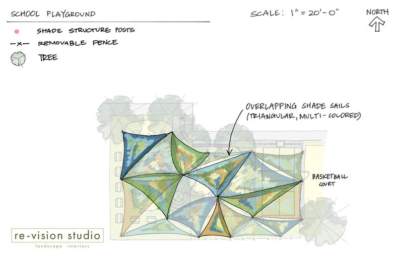 A school playground was re-designed with shade, natural play elements, and flexibility in mind. Features included a sculptural water wall and reflecting pool that serves as the school's signage, a sand box, pickle ball court, amphitheater seating, and new playground equipment. The result: a breathtakingly natural feeling to the space, which also serves as the welcoming view into the school.